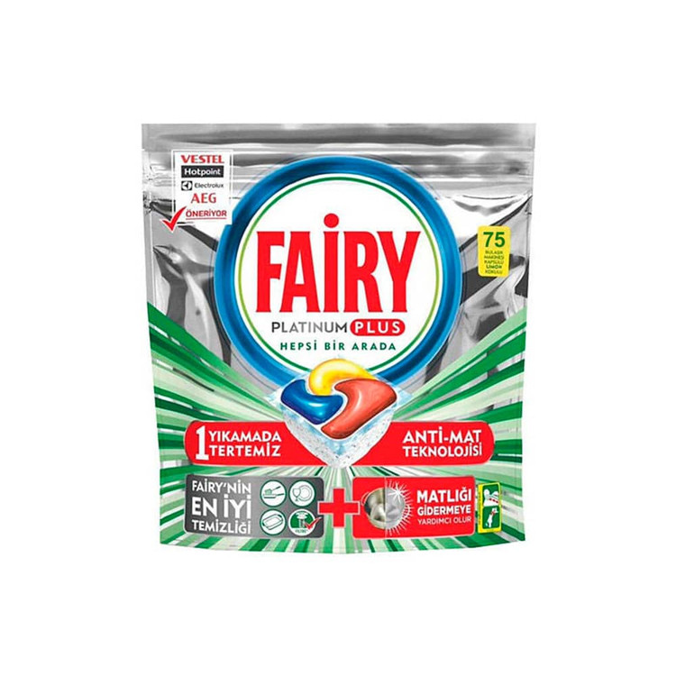 قرص ماشین ظرفشویی فیری Fairy مدل Platinum Plus با رایحه لیمو ۷۵ عددی