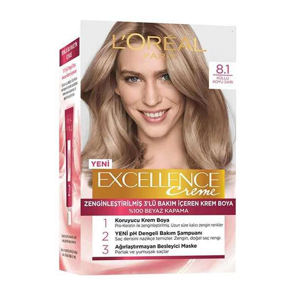 کیت رنگ موی لورال مدل اکسلانس شماره 8.1 رنگ بلوند خاکستری