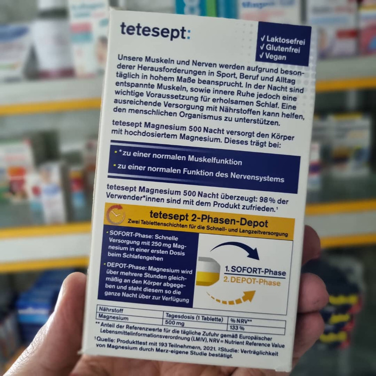 قرص منیزیم تتسپت شب (Magnesium Tetsapt Night) یکی از مکملهای باکیفیت برند آلمانی Tetsapt است که برای بهبود کیفیت خواب و آرامش ذهن طراحی شده است. منیزیم یکی از عناصر حیاتی برای عملکرد صحیح عضلات، اعصاب و سیستم قلبی-عروقی است و کمبود آن میتواند باعث بیخوابی، استرس و خستگی مزمن شود.