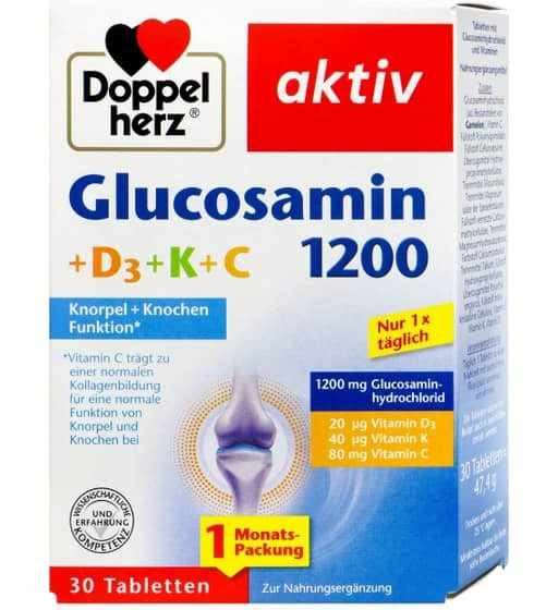 کپسول گلوکوزامین دوپل هرز اکتیو آلمانی دوز 1200 دارای ویتامین C، D3، K